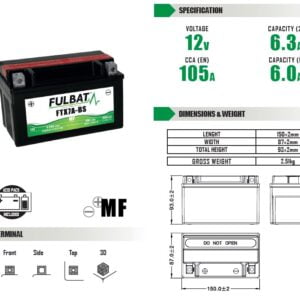 Fulbat batería FTX7A-BS MF ( 550619 ) forma parte de nuestra gama sin mantenimiento. Especialmente diseñada para ofrecer más comodidad y rendimiento, esta batería de 12V y 6,3Ah viene con un pack de ácido y debe ser activada antes del primer uso.