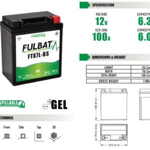 Fulbat batería FTX7L-BS Gel ( 550920 ) esta diseñada específicamente para ofrecer el máximo rendimiento, esta batería de 12V 6.3Ah está lista para usar y no requiere ninguna manipulación de ácido, preparación inicial o mantenimiento.