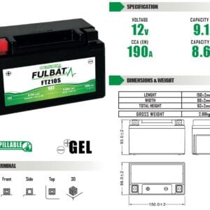 Fulbat batería YTZ10S Gel ( 550636 ) forma parte de nuestra gama GEL. Diseñada específicamente para ofrecer el máximo rendimiento, esta batería de 12V 9,1Ah está lista para usar y no requiere ninguna manipulación de ácido, preparación inicial o mantenimiento.