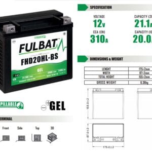 Fulbat batería YHD20HL-BS Gel ( 550881 ) forma parte de nuestra gama GEL. Diseñada específicamente para ofrecer el máximo rendimiento, esta batería de 12V 21,1Ah está lista para usar y no requiere ninguna manipulación de ácido, preparación inicial o mantenimiento.