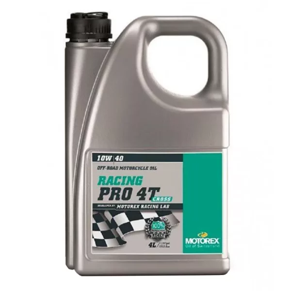 MOTOREX RACING PRO 4T 10W/40 CROSS ( MT024 ) es un aceite especial de alto rendimiento especialmente desarrollado por el MOTOREX Racing Support y su participación en el más alto nivel de competición. Ofrece una estabilidad excepcionalmente buena a altas temperaturas y resistencia al corte y reduce efectivamente la fricción en los motores.