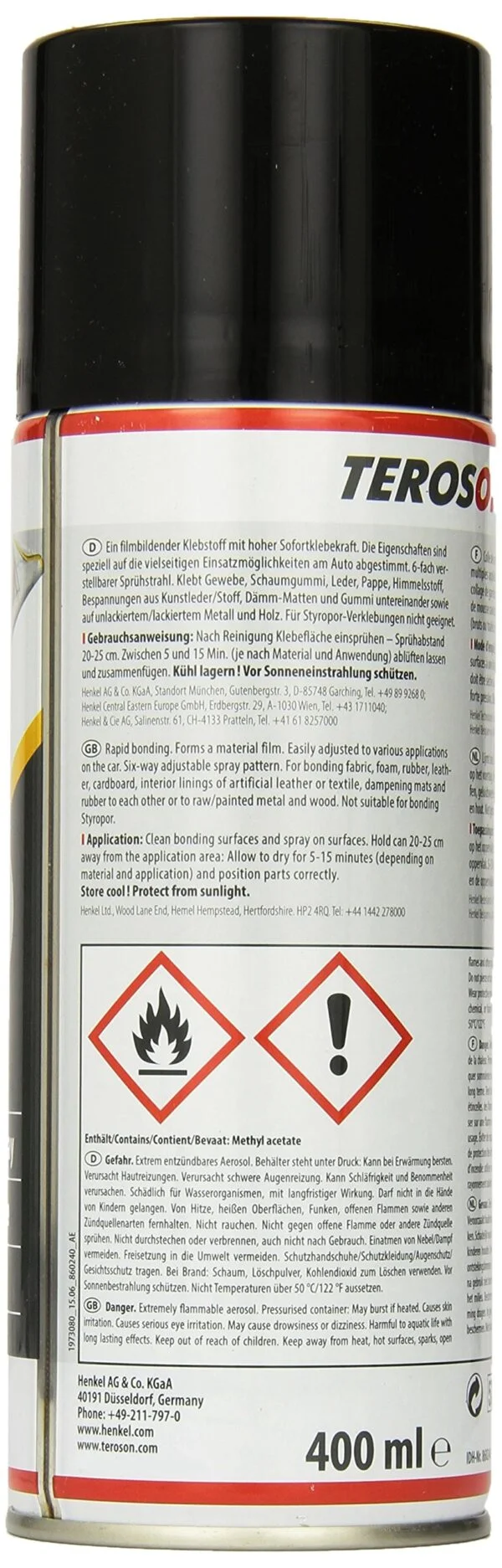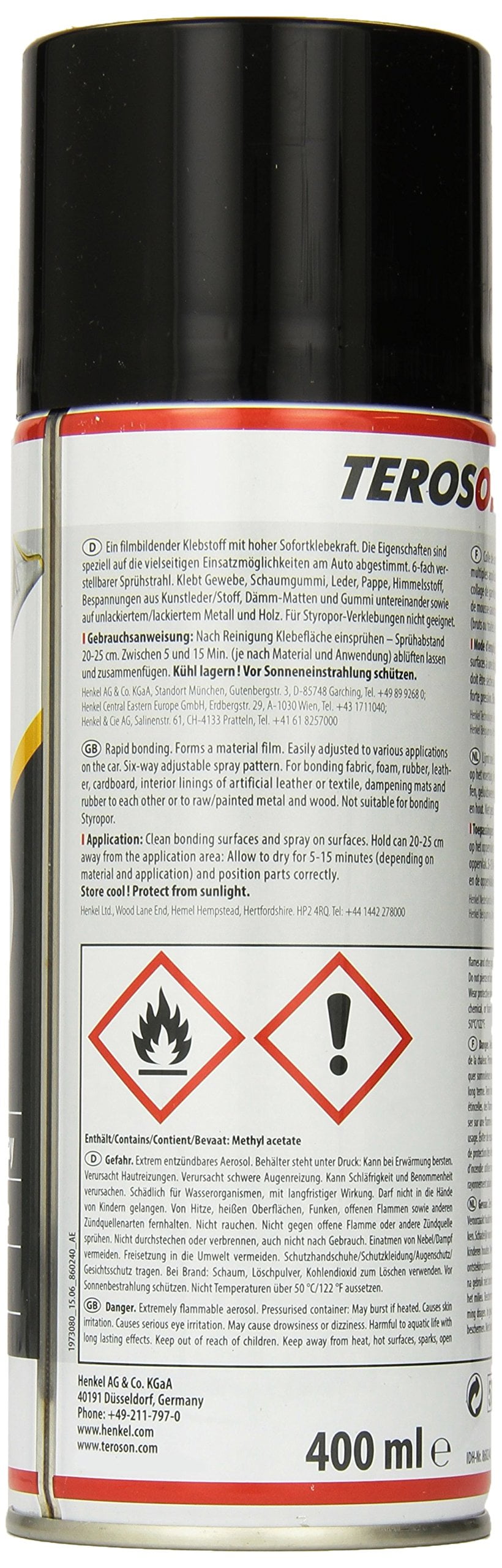 TEROSON® VR 5000 es un adhesivo de contacto de estireno-butadieno (SBR) en aerosol para la adhesión de piezas en la carrocería de vehículos. Es un producto sensible a la presión, de uso general y de alta adhesión instantánea. Algunas de sus aplicaciones típicas incluyen: pegado de tela, gomaespuma, cuero, cartón, revestimientos de tela o plástico, goma y paneles aislantes e insonorizantes. Se recomienda preparar la superficie previamente con TEROSON® VR 10.