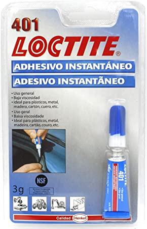 Adhesivo instantáneo, LOCTITE® 401, diseñado para el montaje de materiales difíciles de unir que requieran una distribución uniforme de las tensiones y gran resistencia a la tracción y la cizalladura. El producto proporciona adhesión rápida a una amplia variedad de materiales, como metales, plásticos y elastómeros. LOCTITE 401 también es adecuado para unir materiales porosos como madera, papel, cuero y tela. Perfecto para reparaciones rápidas y todo tipo de pequeñas reparaciones de emergencia.