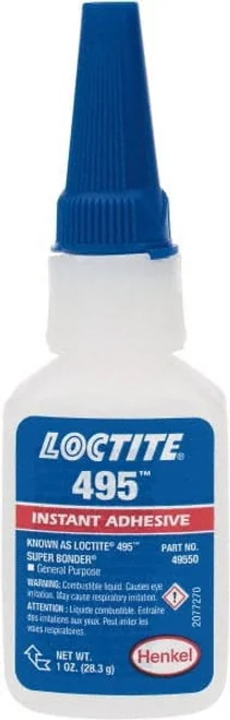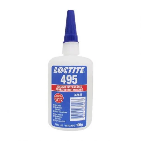 LOCTITE® 495 es un adhesivo instantáneo transparente, incoloro, de baja viscosidad, en base etilo de curado rápido (tiempo de fijación de 5 a 20 segundos). Es capaz de unir una amplia gama de materiales, incluyendo plásticos, cauchos y metales. También adhiere poliolefinas en combinación con la imprimación LOCTITE® SF 770 o LOCTITE® SF 7239. Está disponible en envases de 20 g, 50 g, y 500 g.