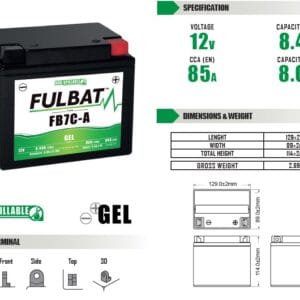 Fulbat batería YB7C-A GEL ( 550989 ) forma parte de nuestra gama GEL. Diseñada específicamente para ofrecer el máximo rendimiento, esta batería de 12V 7,4Ah está lista para usar y no requiere ninguna manipulación de ácido, preparación inicial o mantenimiento.