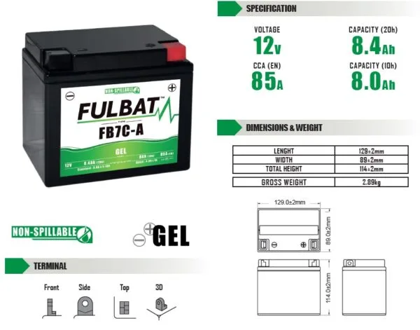 Fulbat batería YB7C-A GEL ( 550989 ) forma parte de nuestra gama GEL. Diseñada específicamente para ofrecer el máximo rendimiento, esta batería de 12V 7,4Ah está lista para usar y no requiere ninguna manipulación de ácido, preparación inicial o mantenimiento.