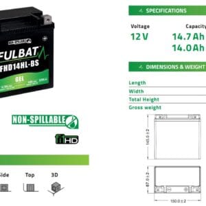 Con terminales y design de batería específicos, la batería de GEL FHD14HL-BS ofrecerá la máxima resistencia a las vibraciones para motocicletas de gran capacidad.