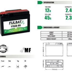 Fulbat batería FTR4A-BS ( 550624 ) forma parte de nuestra gama sin mantenimiento. Especialmente diseñada para ofrecer más comodidad y rendimiento, esta batería de 12V y 2,4Ah viene con un pack de ácido y debe ser activada antes del primer uso.