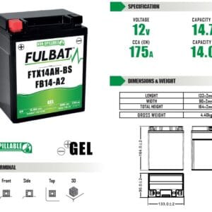 Gracias a su diseño 100% sellado (VRLA), la batería FTX14AH-BS GEL es ideal para todos los deportes de motor que requieren un alto rendimiento.