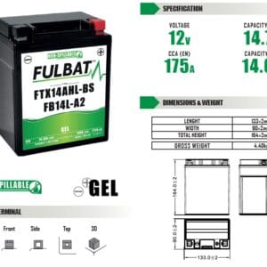 Gracias a su diseño 100% sellado (VRLA), la batería FTX14LAH-BS GEL es ideal para todos los deportes de motor que requieren un alto rendimiento.