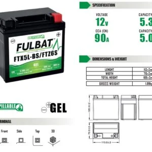 Fulbat batería FTX5L-BS / FTZ6S GEL ( 550919 ) esta diseñada específicamente para ofrecer el máximo rendimiento, esta batería de 12V 5Ah está lista para usar y no requiere ninguna manipulación de ácido, preparación inicial o mantenimiento.