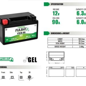 Fulbat batería FTX7A-BS Gel ( 550915 ) forma parte de nuestra gama GEL. Diseñada específicamente para ofrecer el máximo rendimiento, esta batería de 12V 6.3Ah está lista para usar y no requiere ninguna manipulación de ácido, preparación inicial o mantenimiento.