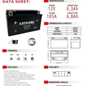 La batería YTX7A-BS está 100% sellada y no necesita mantenimiento una vez activada, lo que mejora su vida útil y su resistencia a las condiciones más duras.