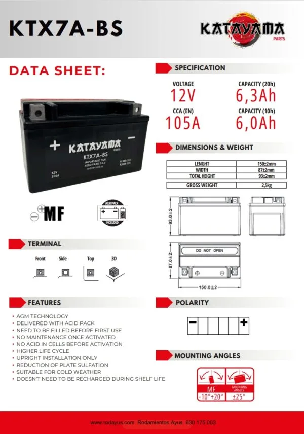 La batería YTX7A-BS está 100% sellada y no necesita mantenimiento una vez activada, lo que mejora su vida útil y su resistencia a las condiciones más duras.