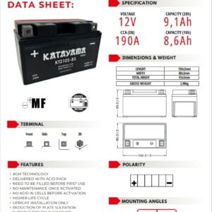 La batería YTZ10S-BS forma parte de nuestra gama AGM. Diseñada específicamente para ofrecer el máximo rendimiento, batería de 12V 9,1Ah.
