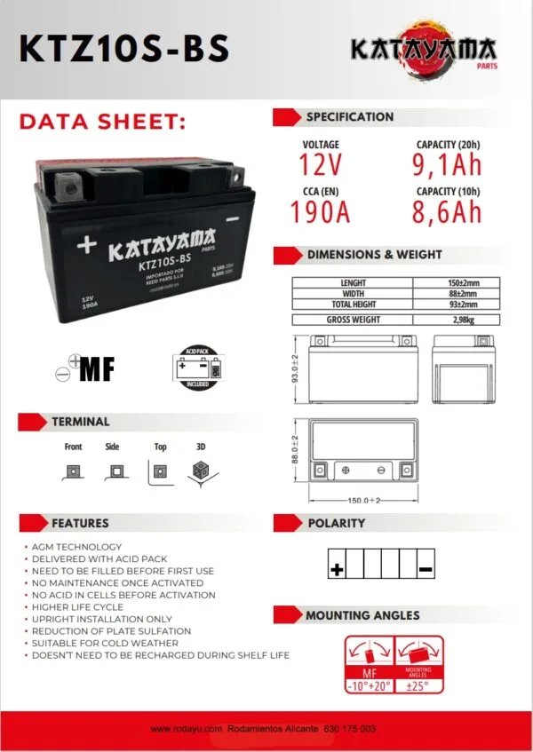 La batería YTZ10S-BS forma parte de nuestra gama AGM. Diseñada específicamente para ofrecer el máximo rendimiento, batería de 12V 9,1Ah.