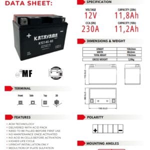 La batería YTZ14S-BS forma parte de nuestra gama AGM. Diseñada específicamente para ofrecer el máximo rendimiento, batería de 12V 11,8Ah.