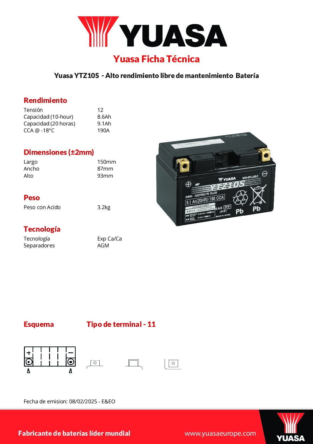 YUASA YTZ10S GEL, batería sin mantenimiento.