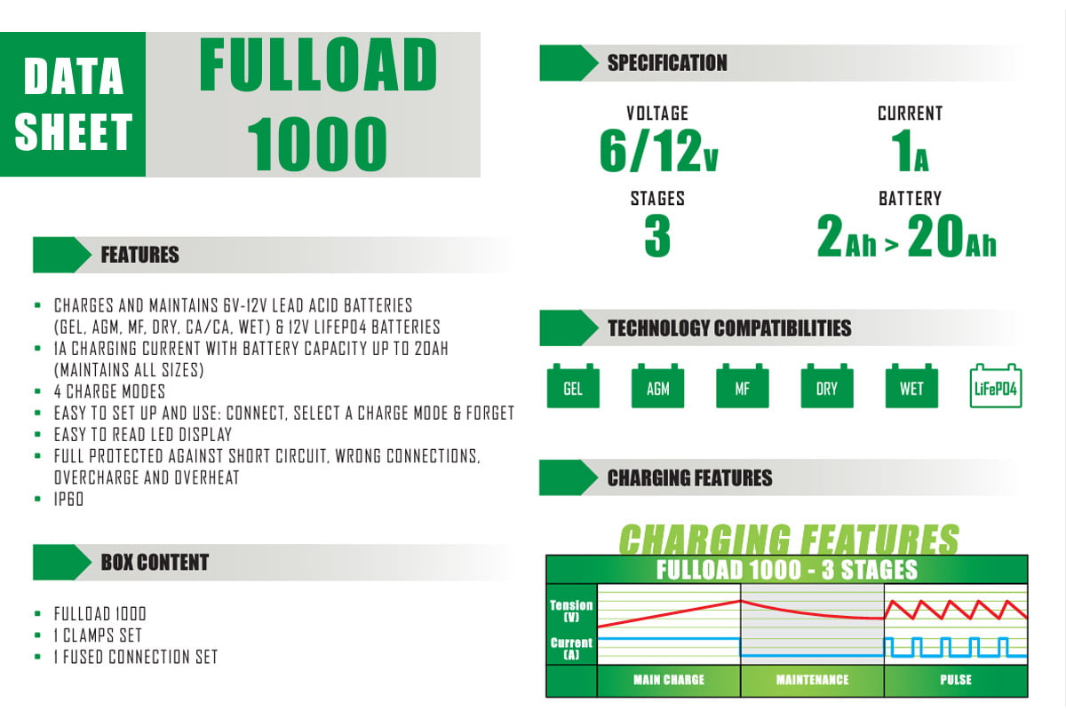 FULLOAD 1000 es un cargador de baterías automático e inteligente .