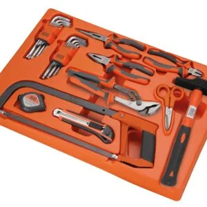 2. 4 alicates, juego de 9 llaves allen de bola, juego de 9 llaves torx inviolables, 1 flexómetro, 1 cutter, 1 tijera, 1 arco de sierra y 1 martillo de peña.