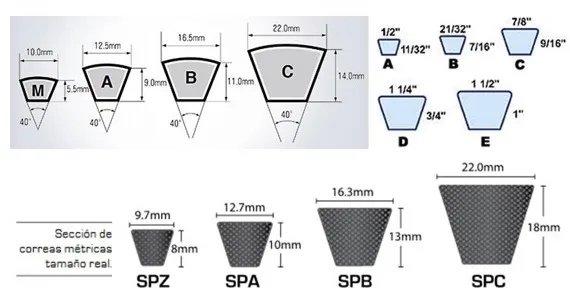 Correas en V, construidas bajo normas internacionales y de secciones forradas.