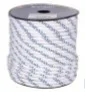 Cuerda trenzada de polipropileno color blanco/azul, realizada con alma trenzada en 8 cabos y el exterior en 24 cabos.