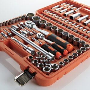 Juego de llaves de vaso de 1/2” + 1/4” de 110 piezas ideal para cualquier trabajo mecánico o de bricolaje.