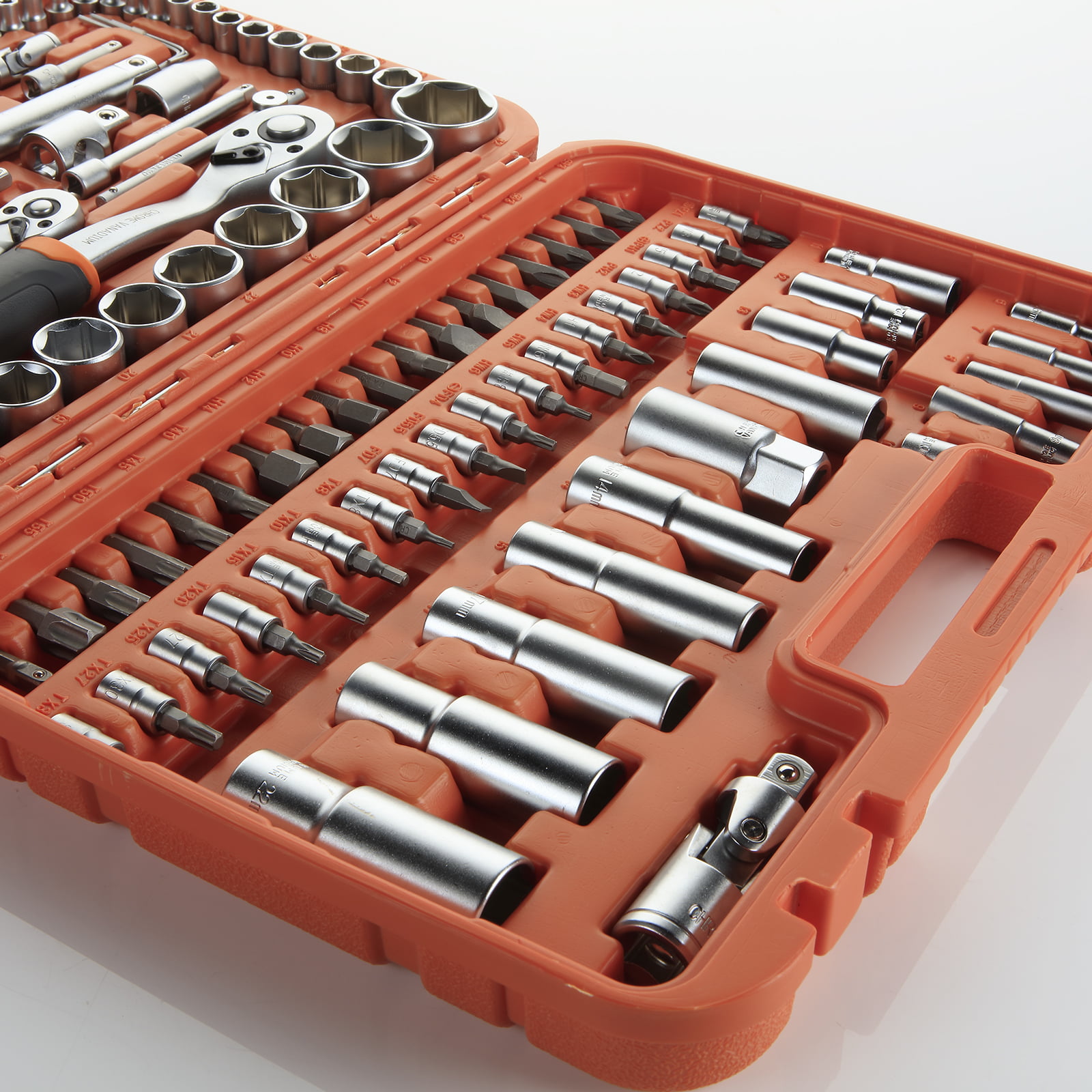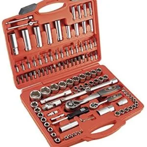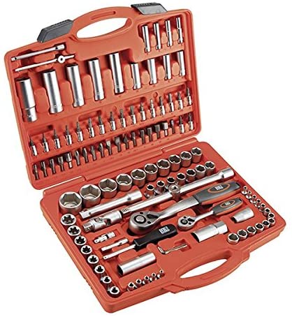 Juego de llaves de vaso de 1/2” + 1/4” de 110 piezas ideal para cualquier trabajo mecánico o de bricolaje.