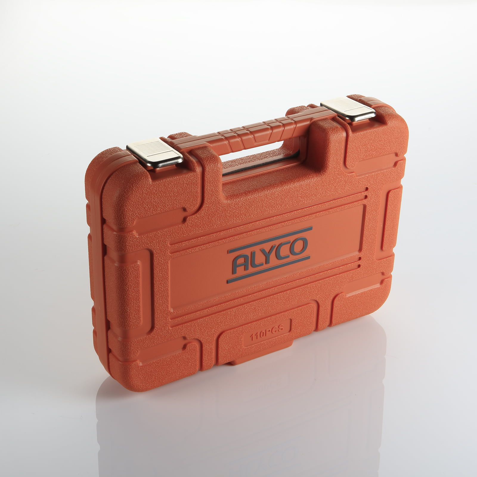 Incluye un maletín de plástico con alojamientos en el interior para cada accesorio o herramienta, en la parte inferior visible de cada ranura se puede observar la medida de cada accesorio para así conseguir un almacenamiento ordenado, fácil y rápido. Además, la bisagra central esta reforzada, para aguantar mejor los golpes y que no se rompa con el uso.