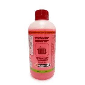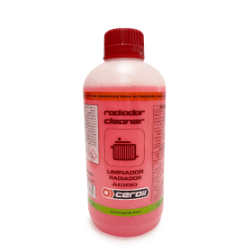 RADIADOR CLEANER ACIDO de CEROIL, CO0028, sirve para todos los circuitos de refrigeración y radiadores de cualquier vehículo automóvil, autocares, camiones, náutica y maquinaria.