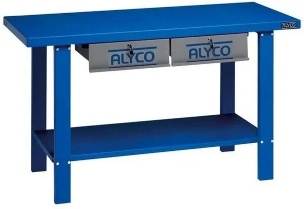 Excelente mesa, de taller, de trabajo metálica con 2 cajones, base de trabajo metálica y balda inferior.