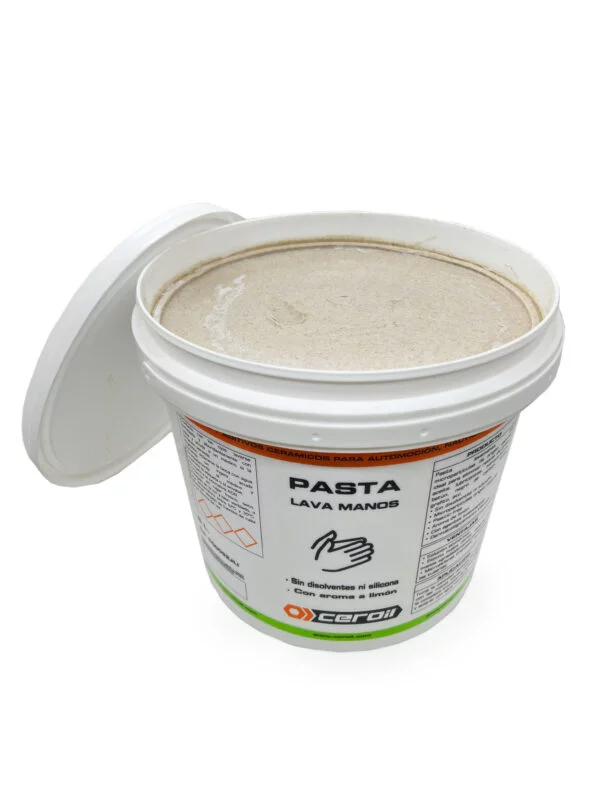 Pasta lavamanos, Ceroil CO0092, con micropartículas de origen natural, ideal para eliminar restos de grasa, aceite, lubricantes, hidrocarburos, betún, negro de carbón, óxido, grafito, etc. Sin disolventes ni silicona. Aspecto: pasta Color: avellana Perfume: limón pH: 10.0 +/- 0.5