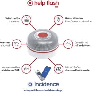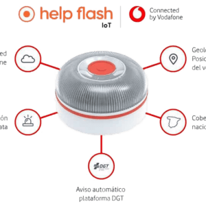 V16 HELP FLASH IOT es una luz de emergencia de alta calidad, autónoma, compacta y ligera, con un funcionamiento intuitivo (se activa pulsando el botón en la parte superior).