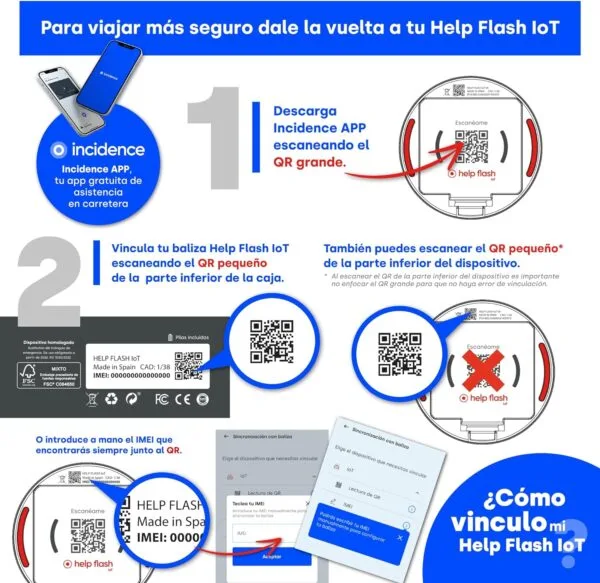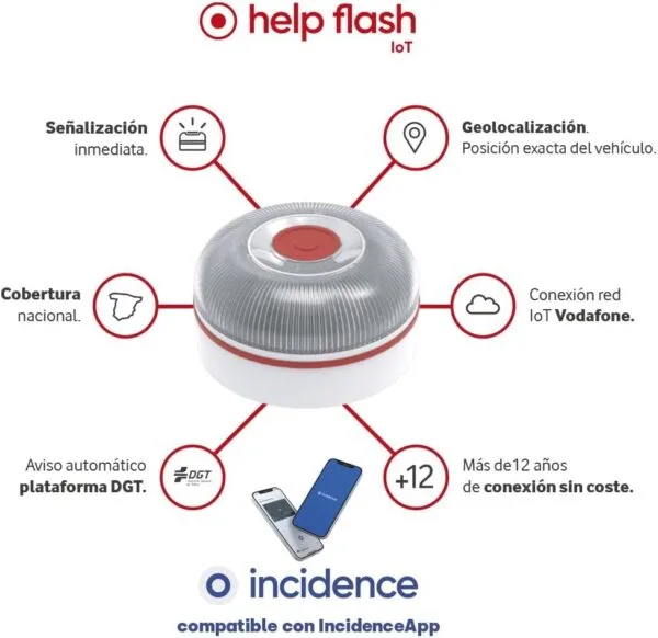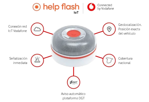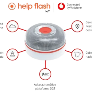 V16 HELP FLASH IOT es una luz de emergencia de alta calidad, autónoma, compacta y ligera, con un funcionamiento intuitivo (se activa pulsando el botón en la parte superior).